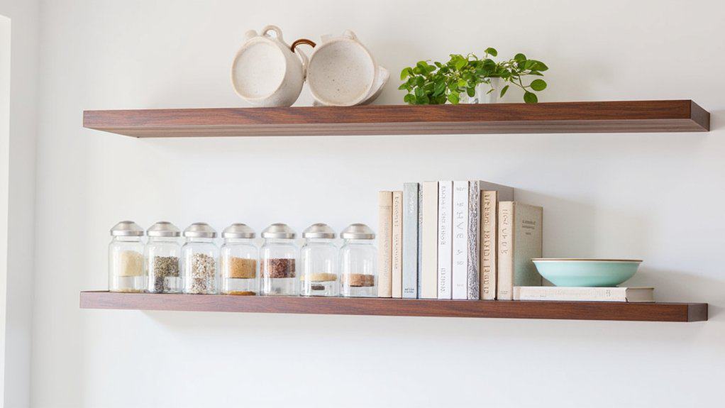 Three fantastic ways to spruce up your kitchen wall start with floating wooden shelves, and they’re easier to install than you might think. You can transform that blank space into a functional display in just a few hours. Grab shelves about 24 inches long and 8 inches deep for balance.