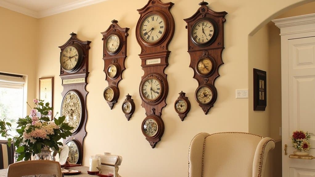 Several creative ideas can transform your kitchen wall, and a vintage clock display offers a timeless charm. You can create a stunning focal point by arranging multiple clocks in different sizes and styles. Imagine a nostalgic vibe that also keeps you on track for meal prep.
