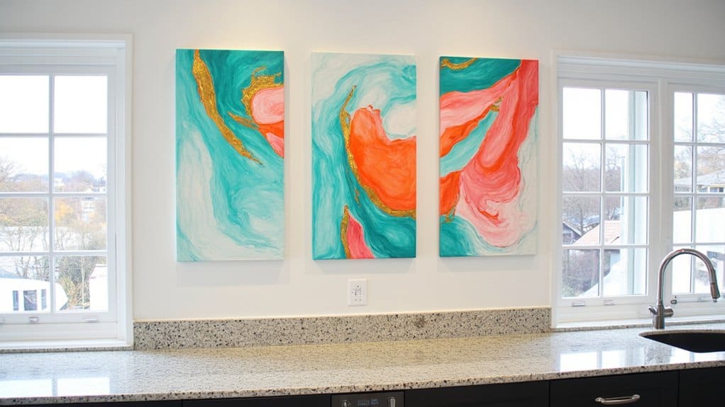 Why not elevate your kitchen with the sleek shine of metallic wall sculptures? These bold pieces instantly transform your large wall into a modern focal point. You’ll love how they reflect light, adding depth and style to your space.
