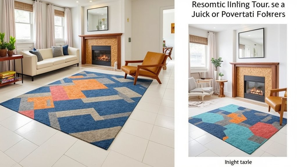 Three well-placed geometric rugs can instantly transform your living room from bland to bold while defining distinct functional zones. Interior designer Maria Chen suggests selecting rugs that complement your white tile floors while creating visual interest through patterns and colors.