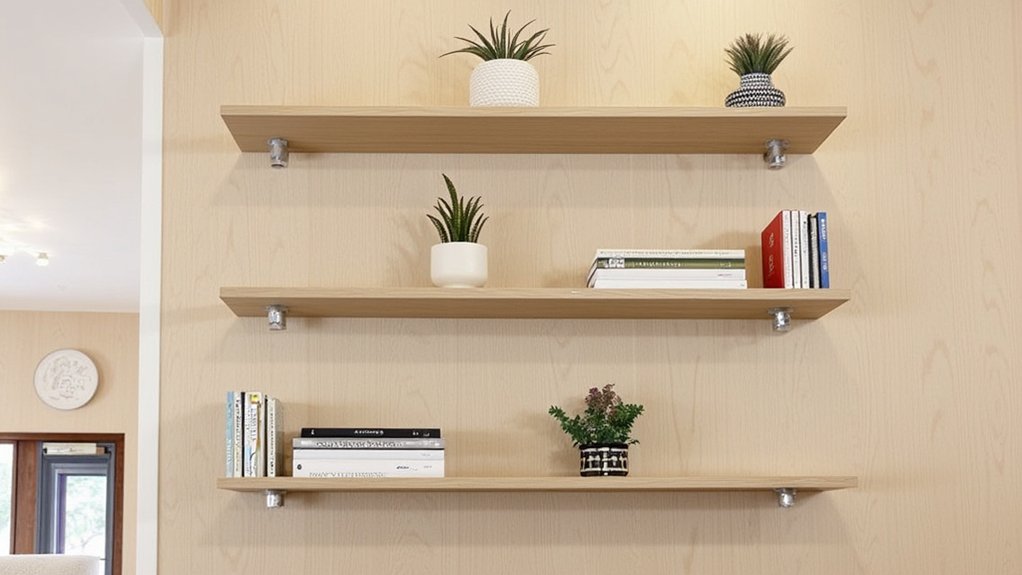 - Keep shelf depths between 6-8 inches for books and 10-12 inches for larger decor items