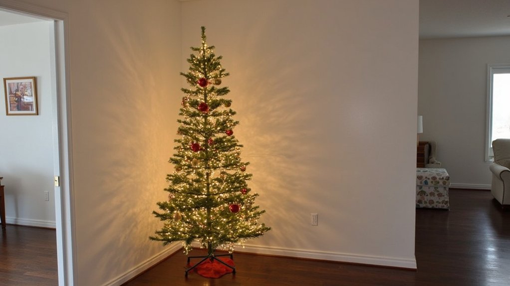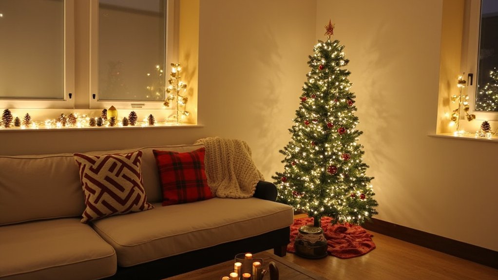 Like a blank canvas waiting for an artist’s touch, your small living room holds endless potential for holiday transformation. You’ll discover that size limitations actually work in your favor when decorating compact spaces, as interior designer Sarah Mitchell notes, “Small rooms create natural focal points for dramatic holiday displays.” From strategic tree placement to space-saving LED arrangements, these proven techniques will help you maximize every square inch while maintaining that coveted cozy Christmas atmosphere.