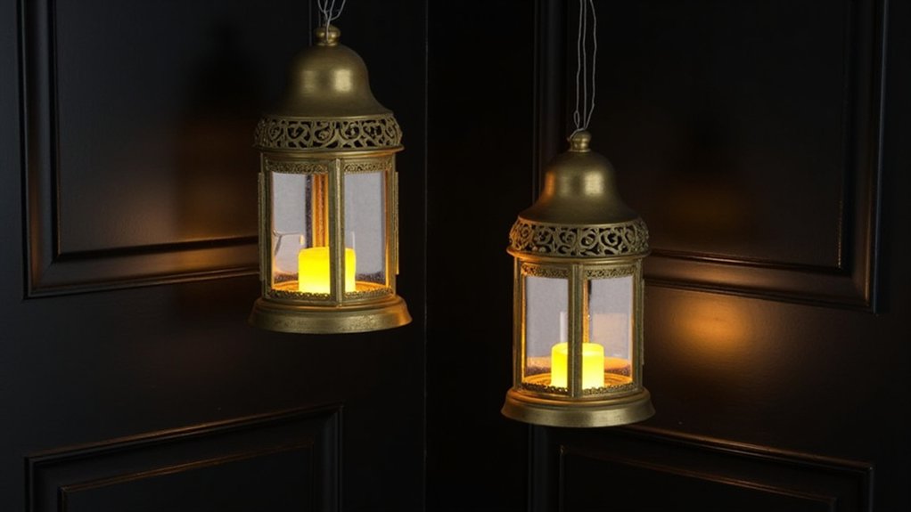 - Set 6-inch lanterns on windowsills, spacing them 12 inches apart for balanced lighting
