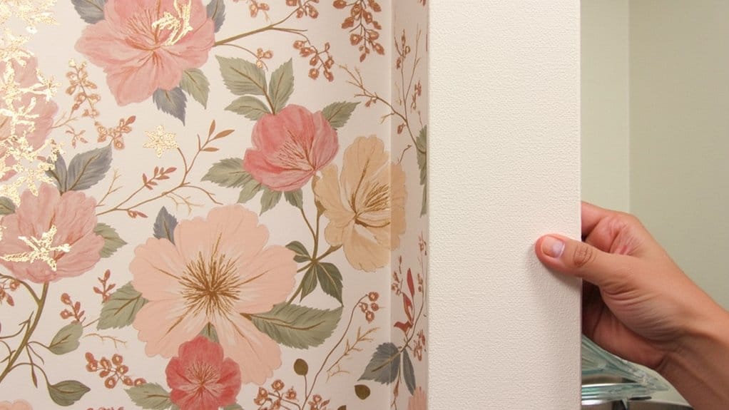 Moving from clever storage tricks like lazy Susans, let’s add some personality to your small walk-in closet with decorative wallpaper panels. You can transform dull walls into eye-catching features in just a weekend.