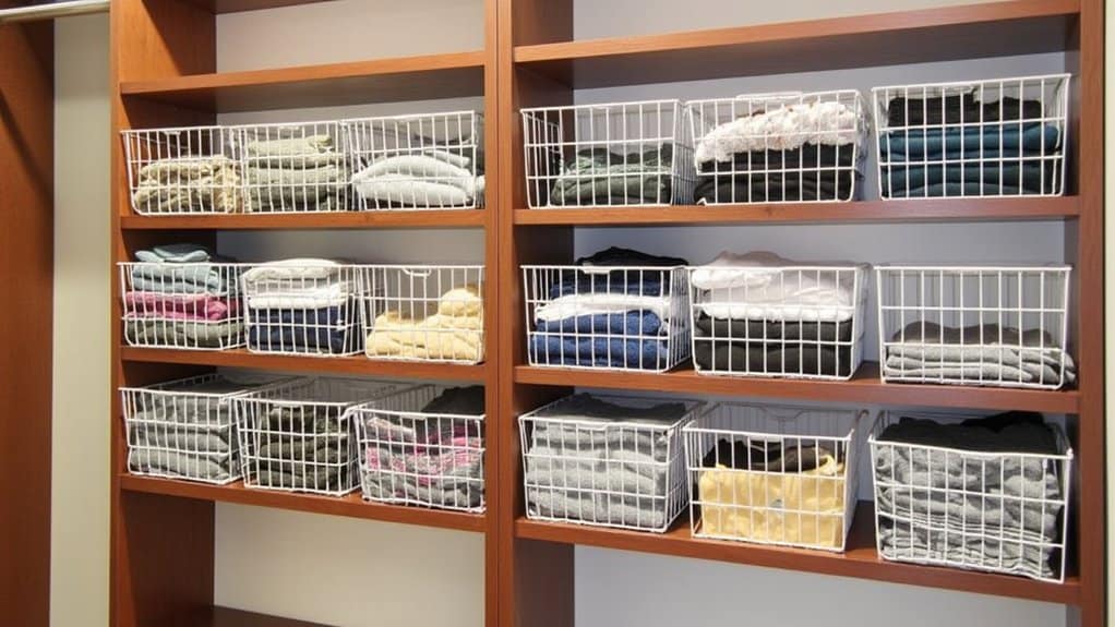 After illuminating your small walk-in closet with LED strips, turn your attention to maximizing storage with under-shelf baskets. These handy tools utilize wasted space, and they’re easy to install in about 10 minutes. “Under-shelf baskets can double your storage capacity,” says organization expert Lisa Carter.