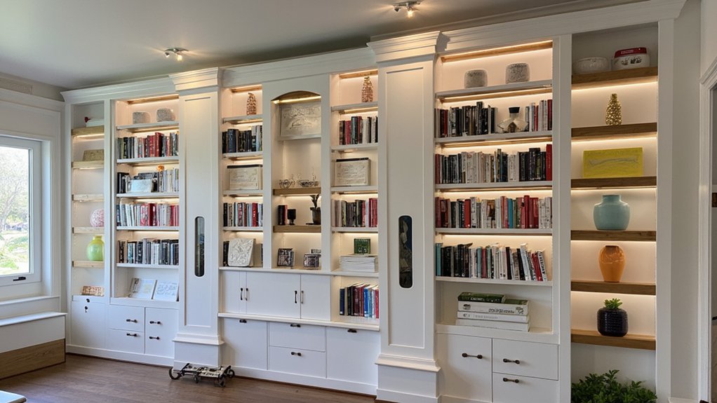 - Incorporate LED strip lighting under shelves for ambient illumination