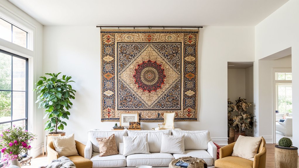 Decorating tall walls with tapestries offers a perfect blend of artistic expression and practical soundproofing benefits. You’ll want to select a tapestry that covers at least 60% of your wall space for maximum visual impact, according to interior designer Sarah Chen.