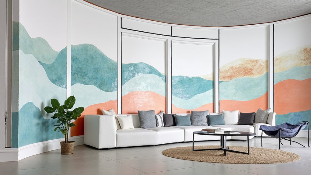 Floor-to-ceiling painted murals transform blank vertical spaces into stunning works of art that can visually expand your room’s dimensions. Interior designer Sarah Chen notes, “A well-executed mural can add depth while reflecting your personal style.” You’ll want to carefully plan your design and consider the room’s existing elements before starting this project.