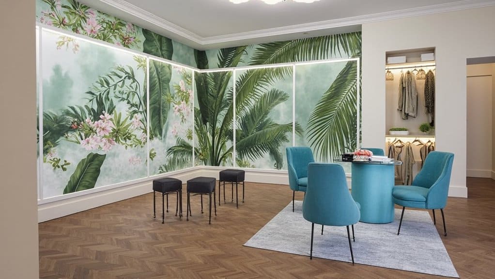 - Bold floral prints for a vibrant 5×5 ft accent wall.