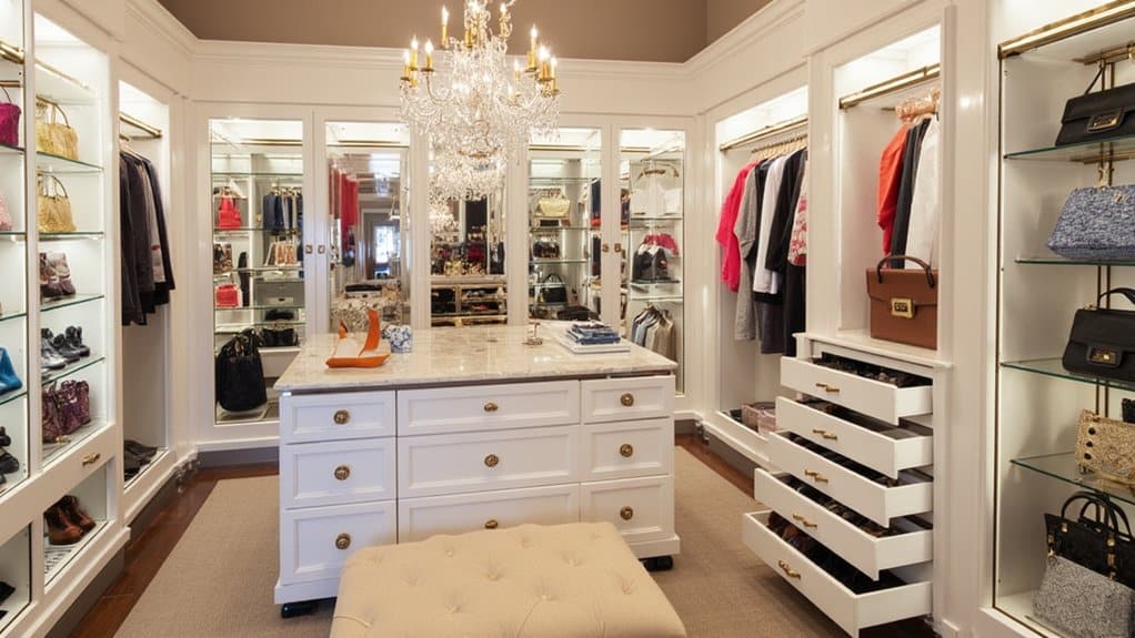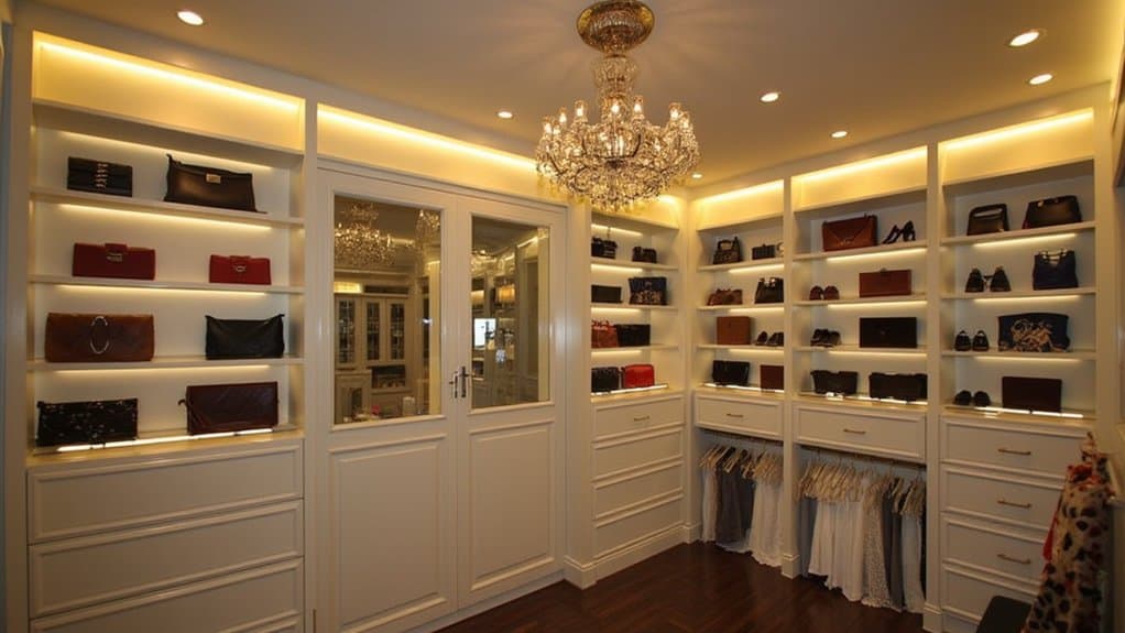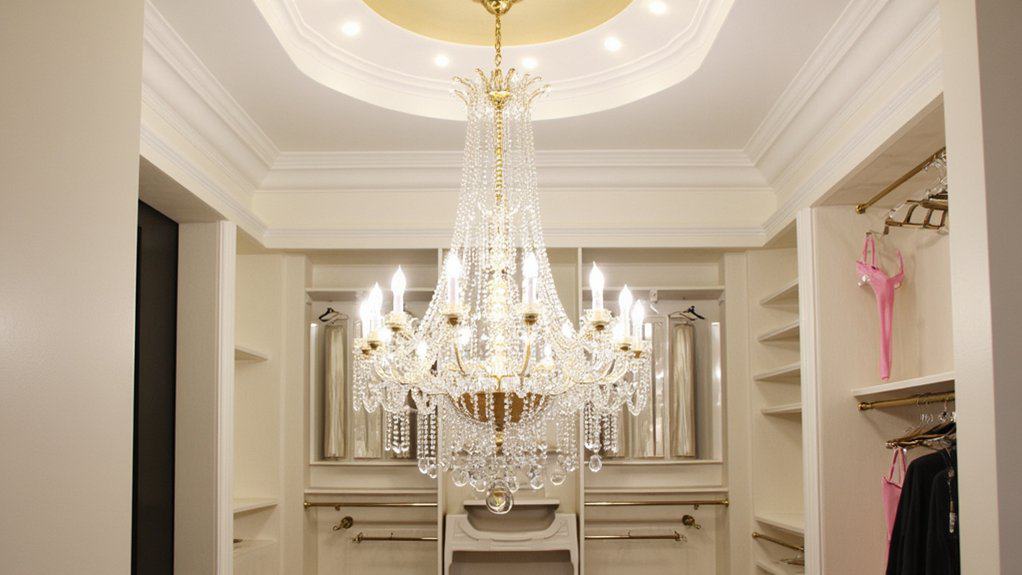 While lighting sets the tone, adding a glamorous chandelier can transform your walk-in closet into a luxe haven. Imagine a sparkling focal point that elevates your space. You’ll want to pick the right one, so let’s break it down.