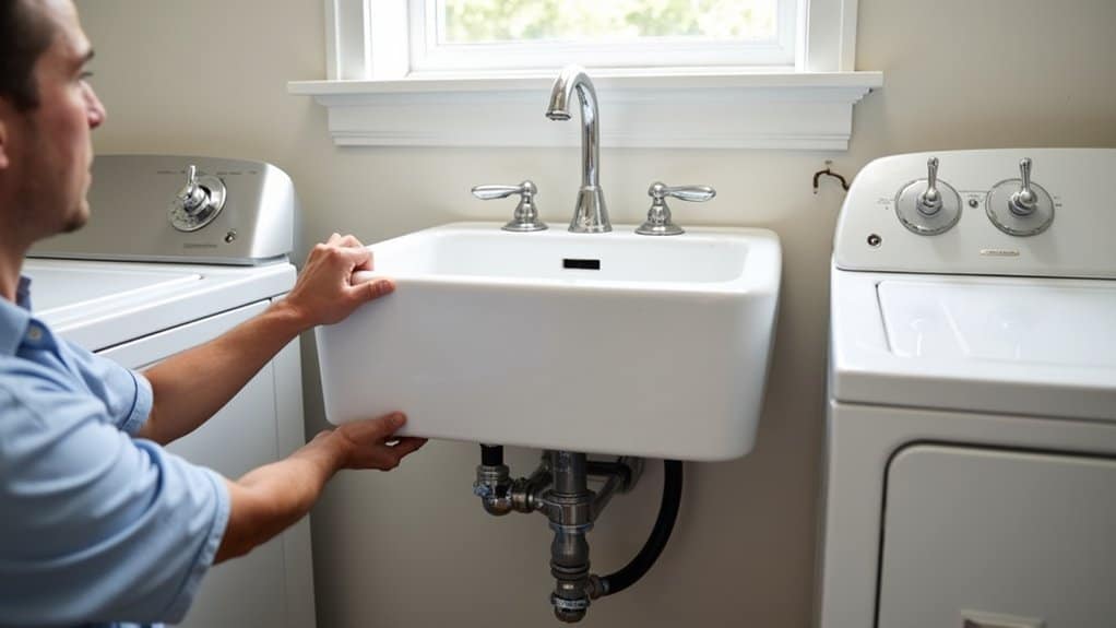 Moving from storage planning, let’s get into setting up a utility sink to make your laundry room even more functional. A utility sink handles messy tasks like rinsing clothes or cleaning supplies.