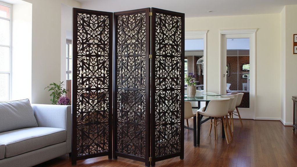 A folding room divider offers one of the most versatile and practical solutions for separating your living room from your dining area. Interior designer Sarah Chen suggests selecting a divider that’s at least 6 feet tall for ideal privacy.