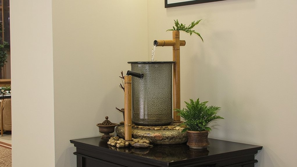 - Select a fountain with rounded edges and natural materials like bamboo or ceramic