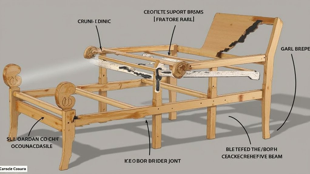 Once you’ve addressed major frame repairs, strengthening the surrounding joints prevents future breakage. Focus on proper joint reinforcement and stress distribution to guarantee long-lasting repairs.