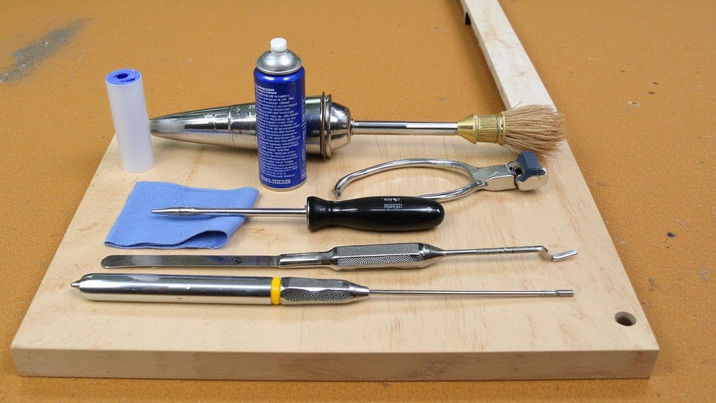 Now that you’ve got the track clean and lubricated, let’s move on to inspecting the rollers and hardware for any issues. This step guarantees your folding closet door rolls smoothly without getting stuck.