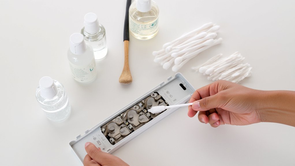 - Dab cotton swab in alcohol and clean each contact thoroughly.
