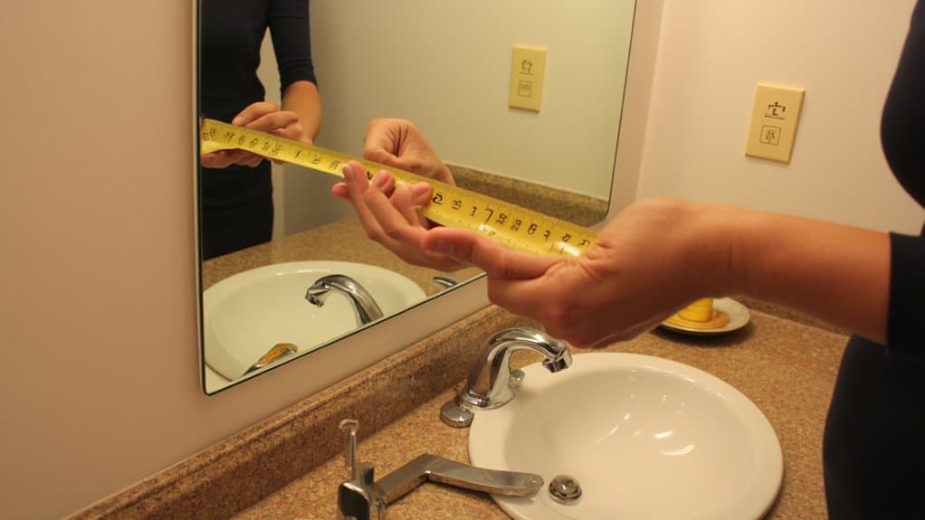 After gathering your tools and clearing your workspace, let’s focus on getting the exact size of your bathroom mirror. Accurate measurements are essential for a perfect fit, so don’t rush this step.