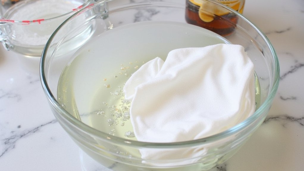 When baking soda isn’t available, white vinegar provides an excellent acidic alternative that cuts through body oils effectively. This method works particularly well on fresh stains and creates a gentle soaking solution.
