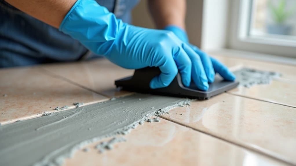 Imagine you’ve just installed beautiful ceramic tiles in your kitchen, but the joints look uneven and unfinished. Don’t worry, you can grout them yourself with the right steps! Start by gathering tools like a rubber float and a 5-gallon bucket. As expert tiler John Smith says, “Clean joints 1/8-inch deep guarantee grout sticks well.” Stick with me to master this process and transform your kitchen’s look.
