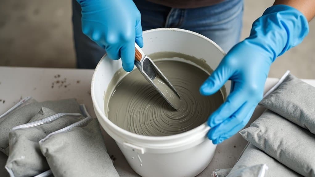Engage in mixing your grout with precision to guarantee a flawless kitchen tile finish. It’s an essential step, so don’t rush it.