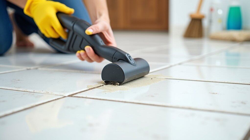 - “Always work in small sections, around 3 square feet,” advises tile expert Maria Lopez, ensuring thorough cleaning.