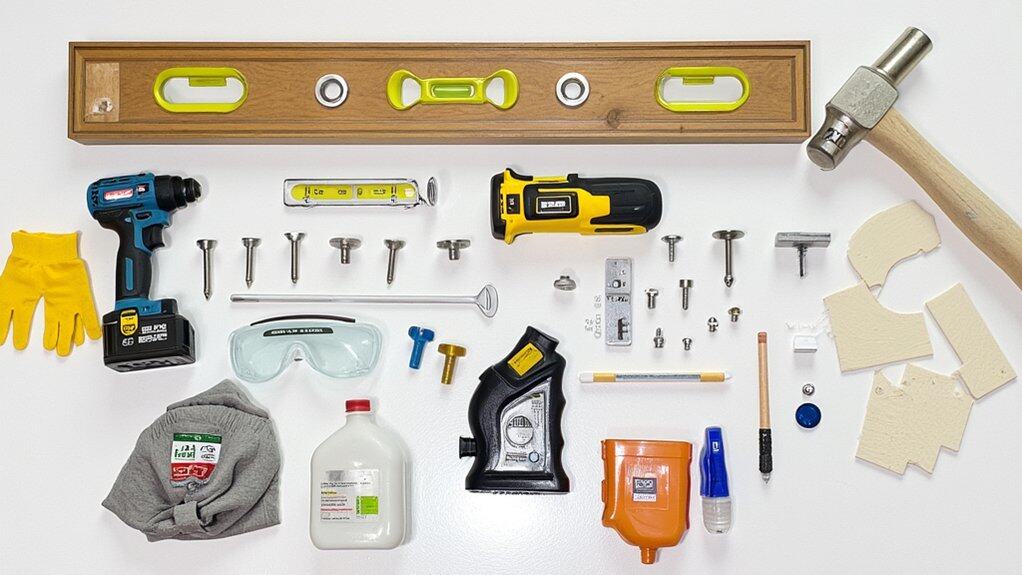 As you prepare to hang your closet shelves, gathering the right tools is your next vital step. You’ll need everything ready to make the job smooth and quick, usually taking about 30 minutes to assemble tools.