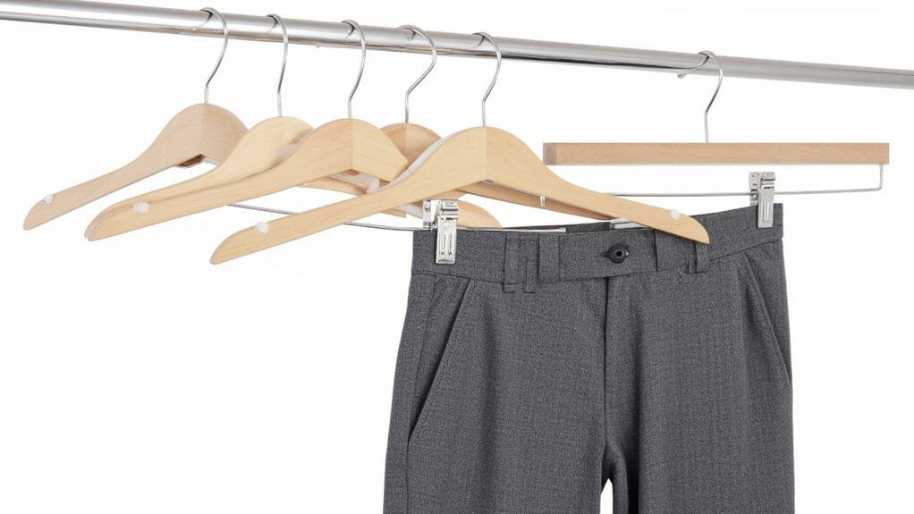 Picture your closet transformed into a neat haven where every pair of pants hangs perfectly without a wrinkle. You’re about to master hanging pants with ease and precision. Start with the right tools, like pant hangers or clip hangers, spaced 6 inches apart for airflow. As expert organizer Jane Smith says, “Proper spacing prevents creasing and saves time.” Curious about the best methods? Stick around for game-changing tips.