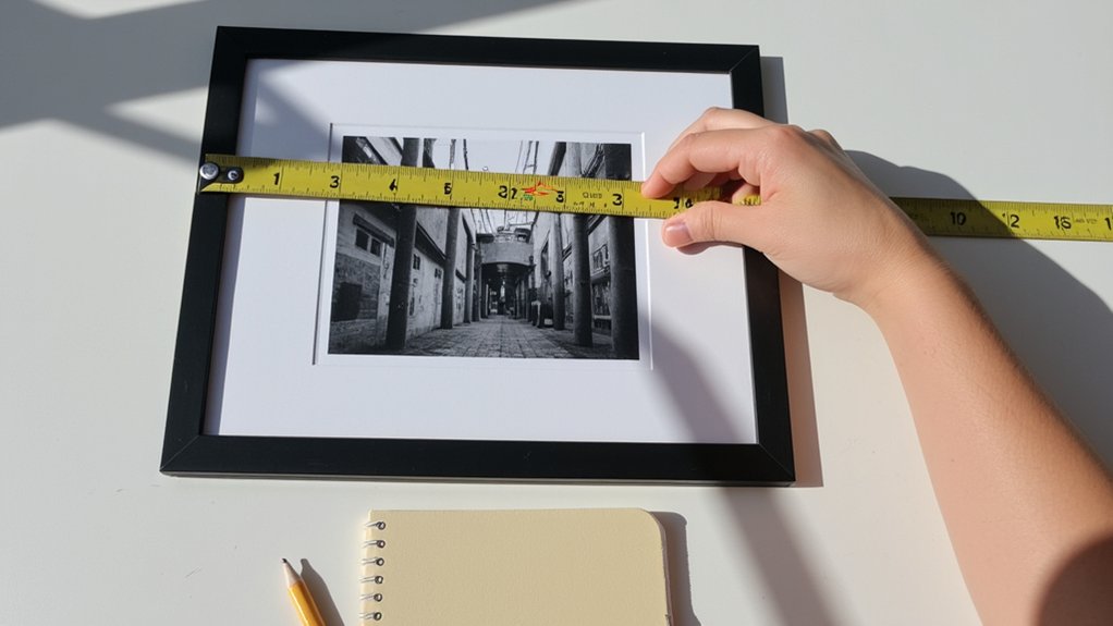 Moving from picking the right hardware, it’s time to focus on getting your picture’s measurements spot on. Accurate dimensions guarantee your artwork fits perfectly on the wall without guesswork.