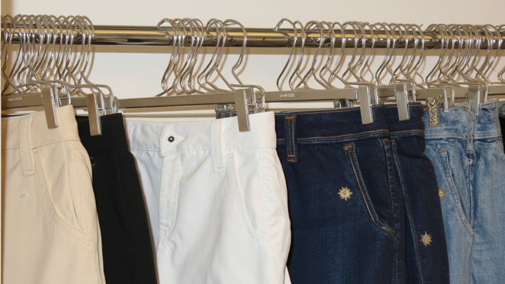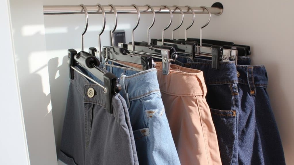 Imagine you’ve just bought a new pair of denim shorts, but your closet’s a mess. Don’t worry, I’ve got you covered with easy ways to hang shorts properly. You’ll organize them using sturdy hangers or clever hooks, fitting 8-10 pairs on a 4-foot rod within 10 minutes. As expert organizer Marie Kondo says, “Keep only what sparks joy, and store it visibly.” Curious about the best methods? Let’s explore together!