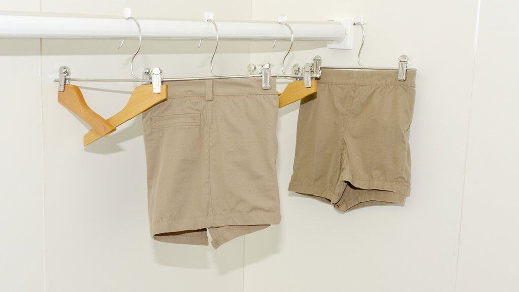 - No slipping: Heavy-duty hangers grip fabric, so shorts stay put.