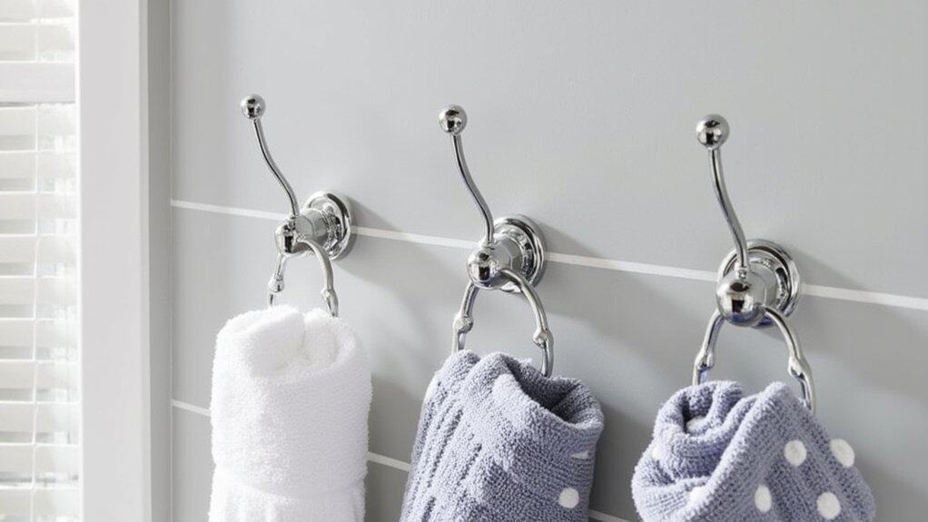 Let’s shift focus from over-the-door racks to another smart space-saver: wall-mounted towel hooks for your small bathroom. These hooks save floor space and keep towels within reach. You can install them easily with basic tools in under 30 minutes.