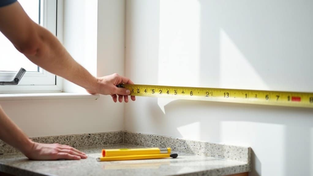 - Note the height from countertop to ceiling, aiming for standard cabinet heights around 54 inches.