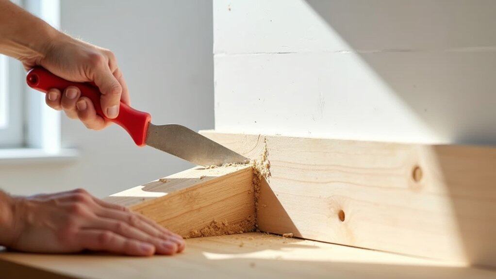 - Fill Gaps: Apply wood filler, sand after 2 hours for smoothness.