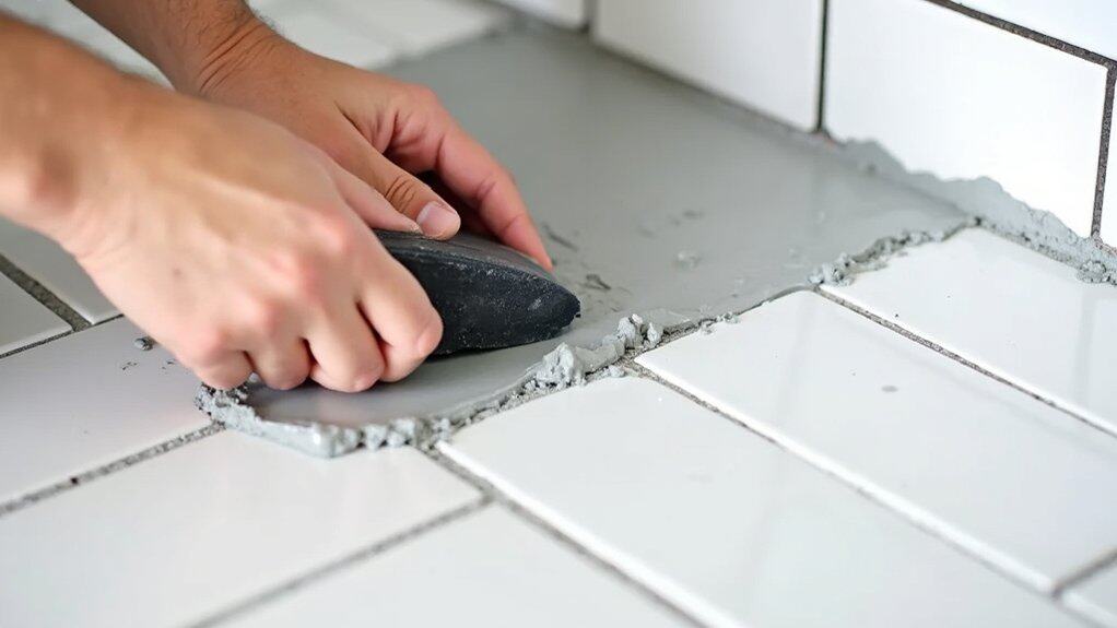 Plunge into the next phase of your kitchen backsplash project by applying the grout mixture to seal and finish your tiles. This step’s essential for durability and style, so let’s get it right.
