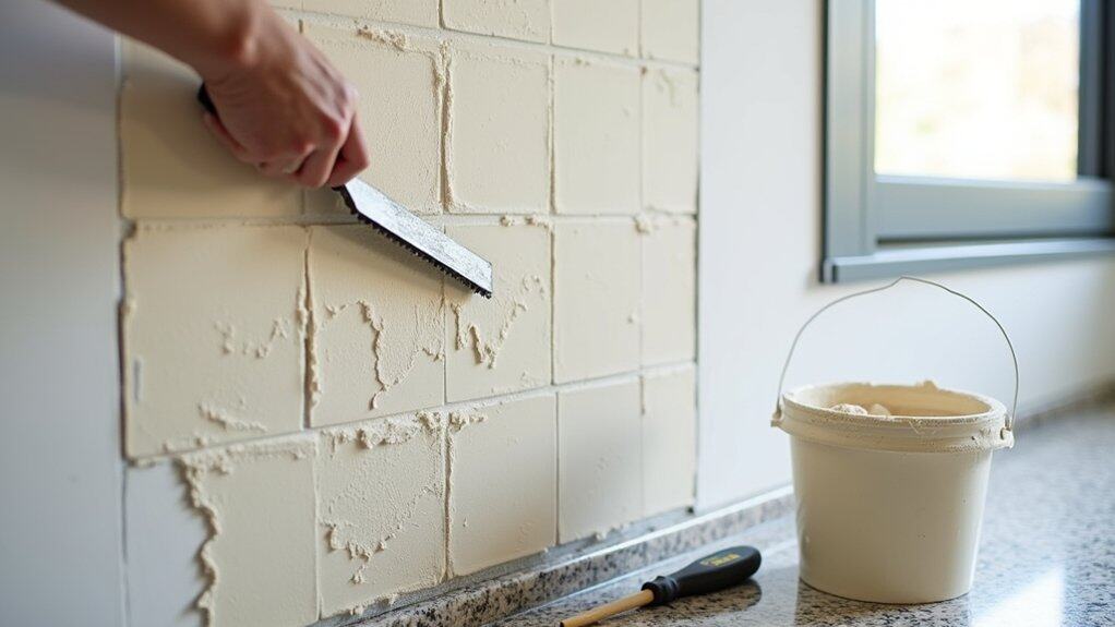 After nailing down your measurements and layout marks, it’s time to get hands-on with applying tile adhesive. This step’s essential for a solid backsplash.