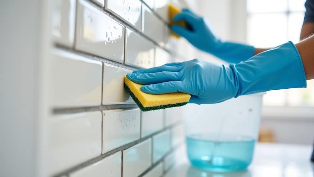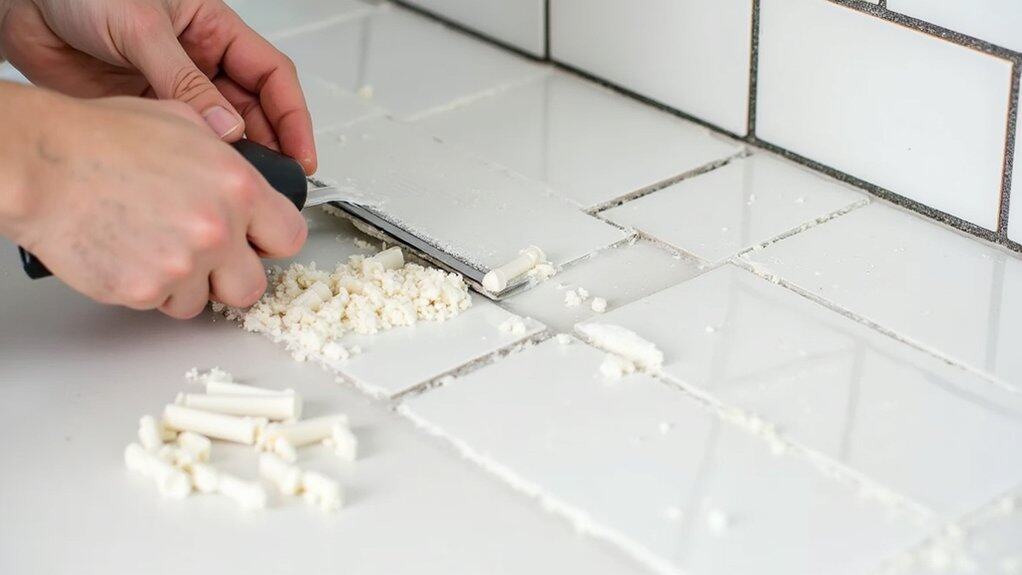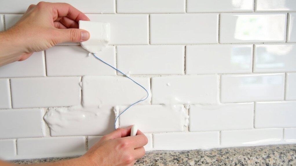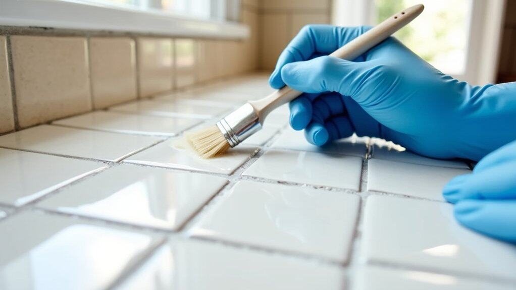 Let’s move on to protecting your hard work by sealing the grout lines on your kitchen backsplash. This step prevents stains and water damage, keeping your tile looking fresh.