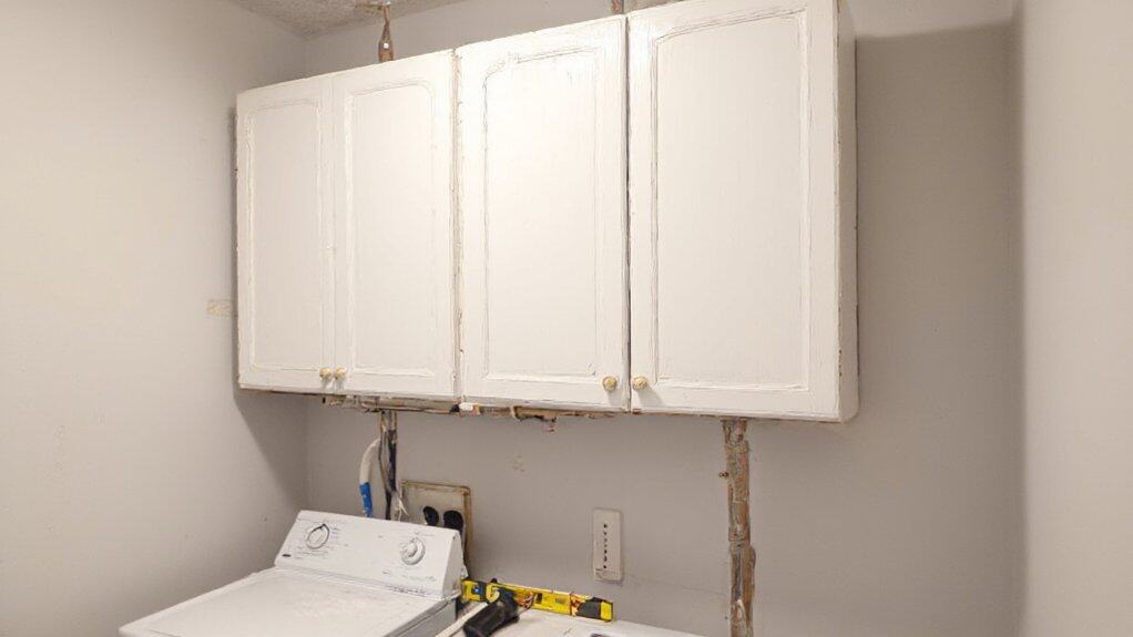 Start by grabbing a level and a pencil to mark where your wall cabinets will hang with precision. Accuracy here saves headaches later. Let’s get those lines perfect for your laundry room setup.