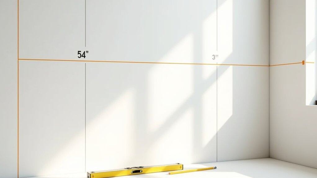 - Measure up 54 inches from the floor for the bottom of standard wall cabinets.