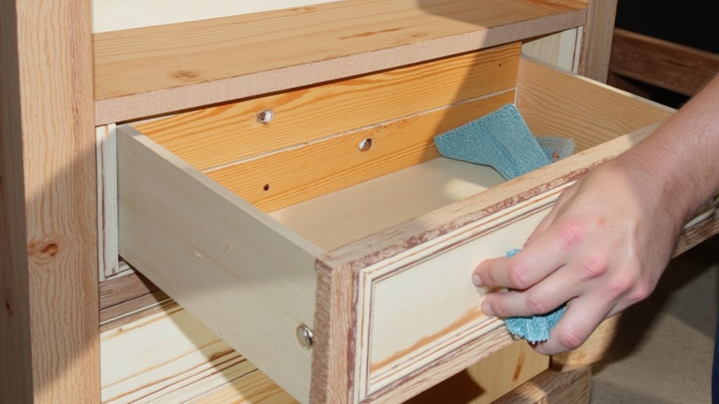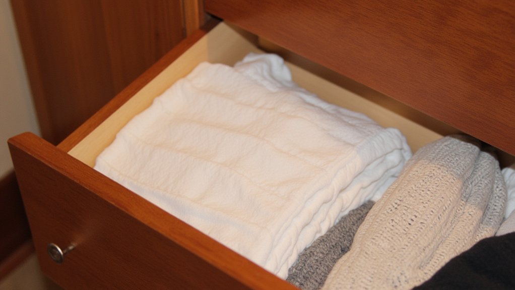 You’ll be amazed at how drawer ventilation prevents musty odors. Leave your dresser drawers open for a few hours weekly to promote airflow and maintain freshness through proper odor prevention.