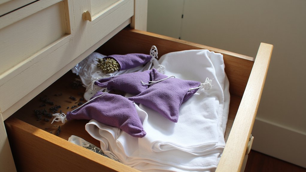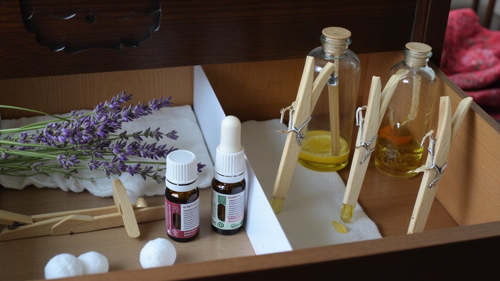 While dryer sheets offer one aromatic solution, natural oils provide another powerful way to keep your dresser drawers smelling wonderful. Essential oil benefits include their long-lasting scent and natural antimicrobial properties.