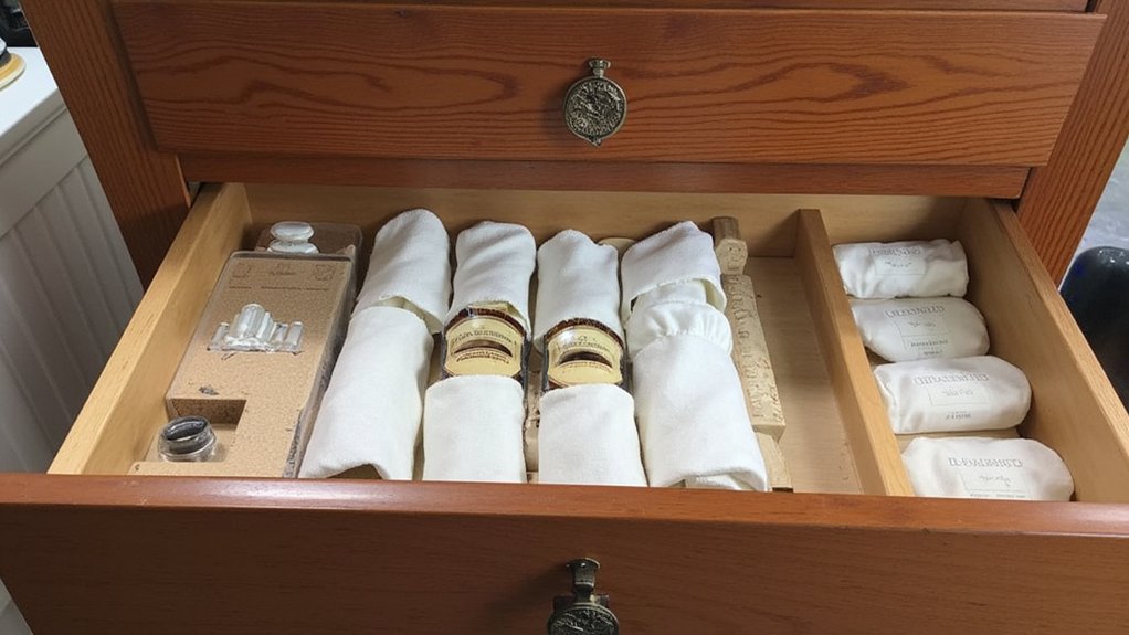 The cedar benefits include natural pest control and moisture management that’ll help maintain your clothing’s condition. You’ll want to install the liners properly to maximize their effectiveness and guarantee proper drawer maintenance.