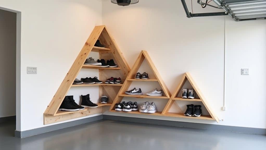 Hey, let’s tackle that messy garage shoe pile together! I’ve struggled with boots and sneakers everywhere, tripping over them like a clumsy dance routine. You can start by installing wall-mounted racks—grab a 36-inch one from any hardware store, mount it at eye level, and boom, instant order! Trust me, it’s a game-changer. But wait, I’ve got more clever tricks up my sleeve to share. Stick around for the full scoop!