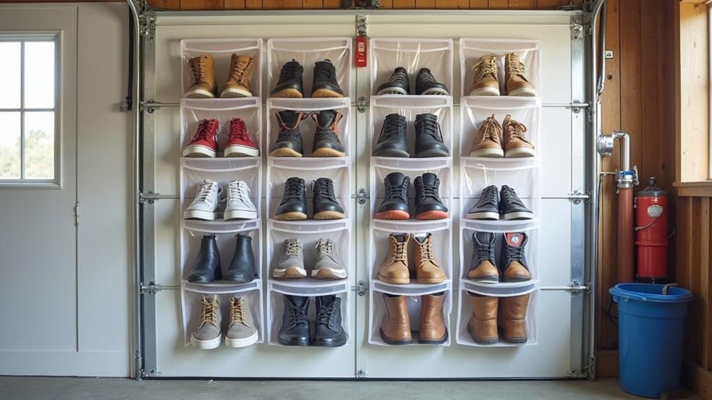 Hanging over-door organizers are a fantastic solution for keeping shoes organized in your garage, especially if floor space is limited. These organizers typically hook over the top of a door, utilizing vertical space that often goes unused. They come with pockets or compartments designed to hold shoes, making it easy to see and access your collection without cluttering the floor.