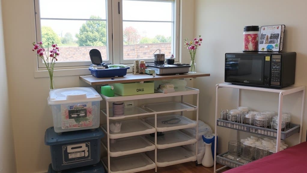 - Set Up a Temporary Kitchen: Use a small table with a microwave and a portable electric burner. Keep meals basic, like heating pre-made soups (32 oz. containers) in under 5 minutes.
