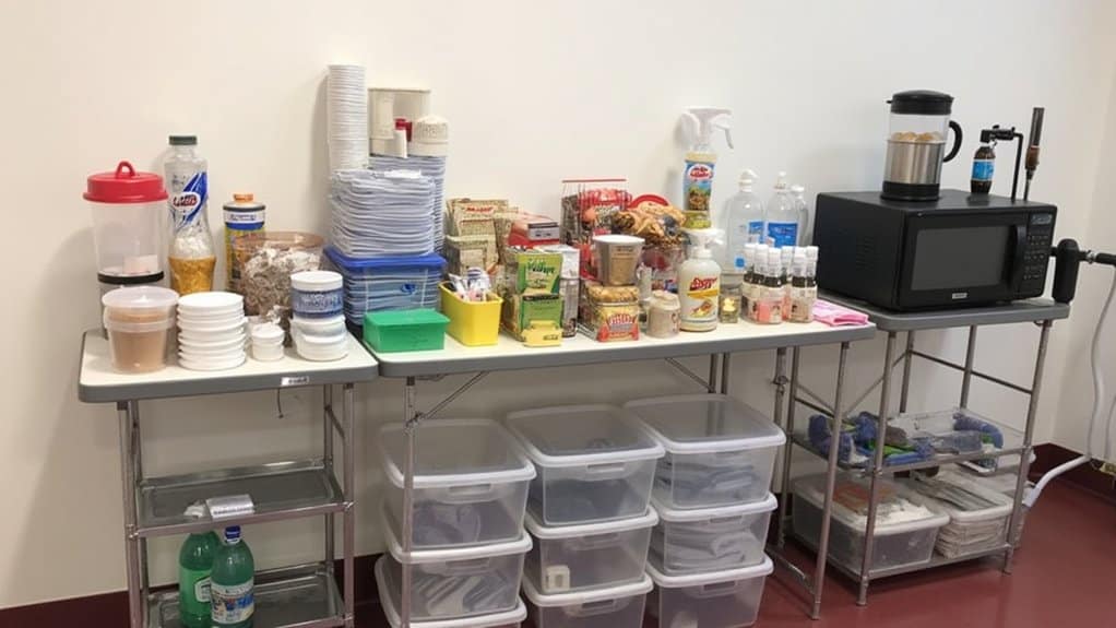 Start preparing for your kitchen remodel by stocking essential supplies a full week before demolition begins. You’ll need to gather basics to keep your household running smoothly during the chaos.