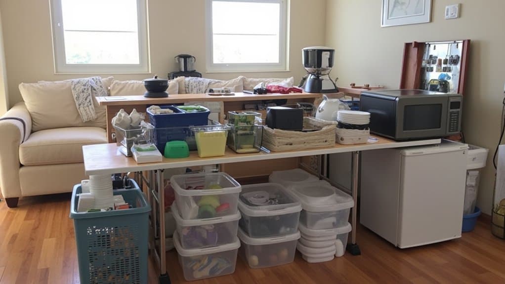 - Set Up a Temporary Station: Use a small table (about 3×2 feet) in the living room for morning essentials like a coffee maker. Keep it running from 6:00 AM to 8:00 AM.