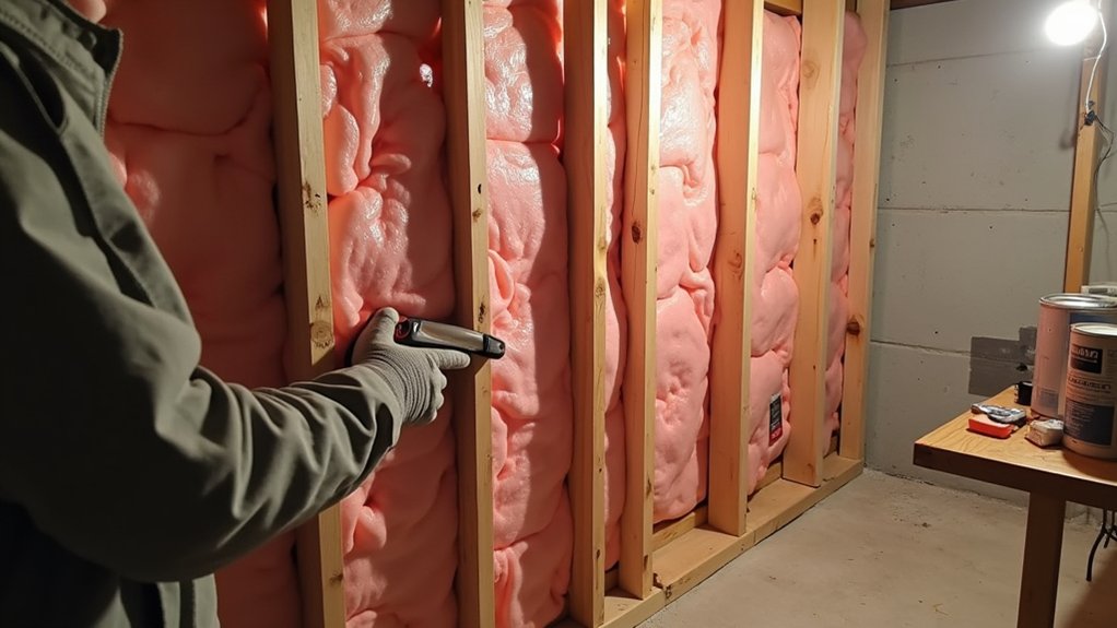 While moisture barriers save your basement from becoming a swamp, let’s talk about keeping it cozy with proper insulation. Man, I’ve shivered through enough cold nights to know this step’s a lifesaver! You’ve gotta make that space warm.