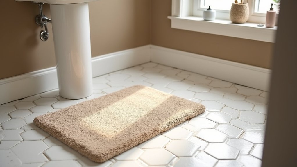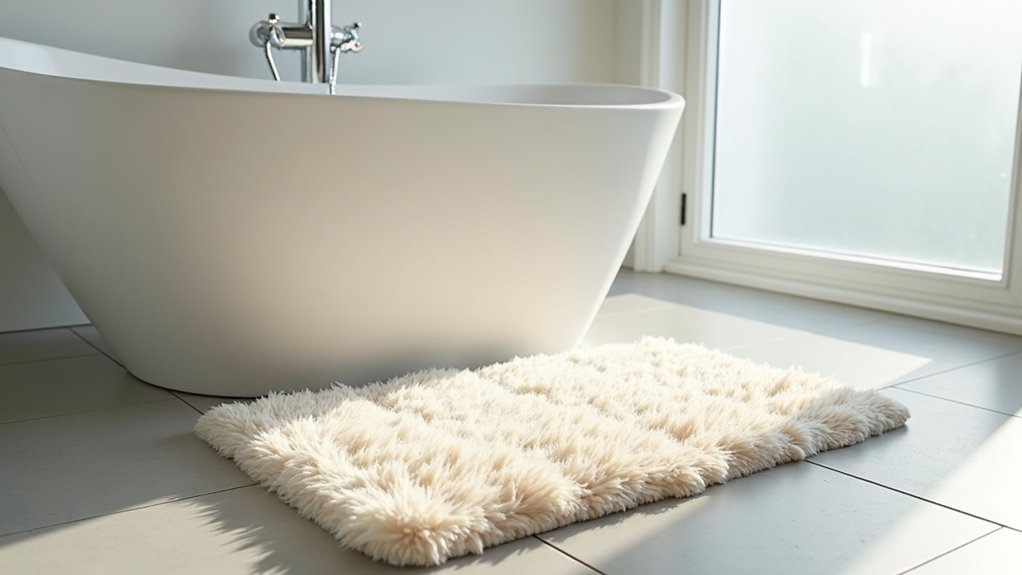 First, pick a thick, soft mat—aim for one with a 1-inch pile height from a store like Target. Lay it near your tub or shower, about 6 inches from the edge, so it’s easy to step onto. Wow, that squishy feel is pure bliss!
