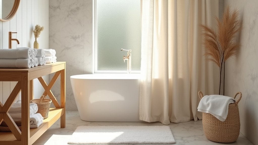 Let’s plunge into making your bathroom extra snuggly by incorporating soft textures—it’s a game-changer! Honestly, I’ve turned mine from blah to ahh with just a few tweaks, and you can too. Start with these easy steps!