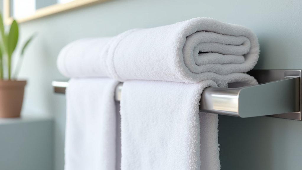 Start by picking quality towels—go for 100% cotton with a GSM (grams per square meter) of 500-600 for max fluff. Hang ‘em right with these steps: